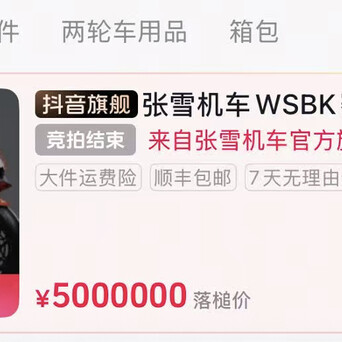 【张雪的冠军复刻版机车,封顶500万,开拍后45秒钟就结束了】张雪机车的WSBK赛事复刻一号车10号晚上8点开始拍卖,1分钟内就从起拍价40万达到了500万元。